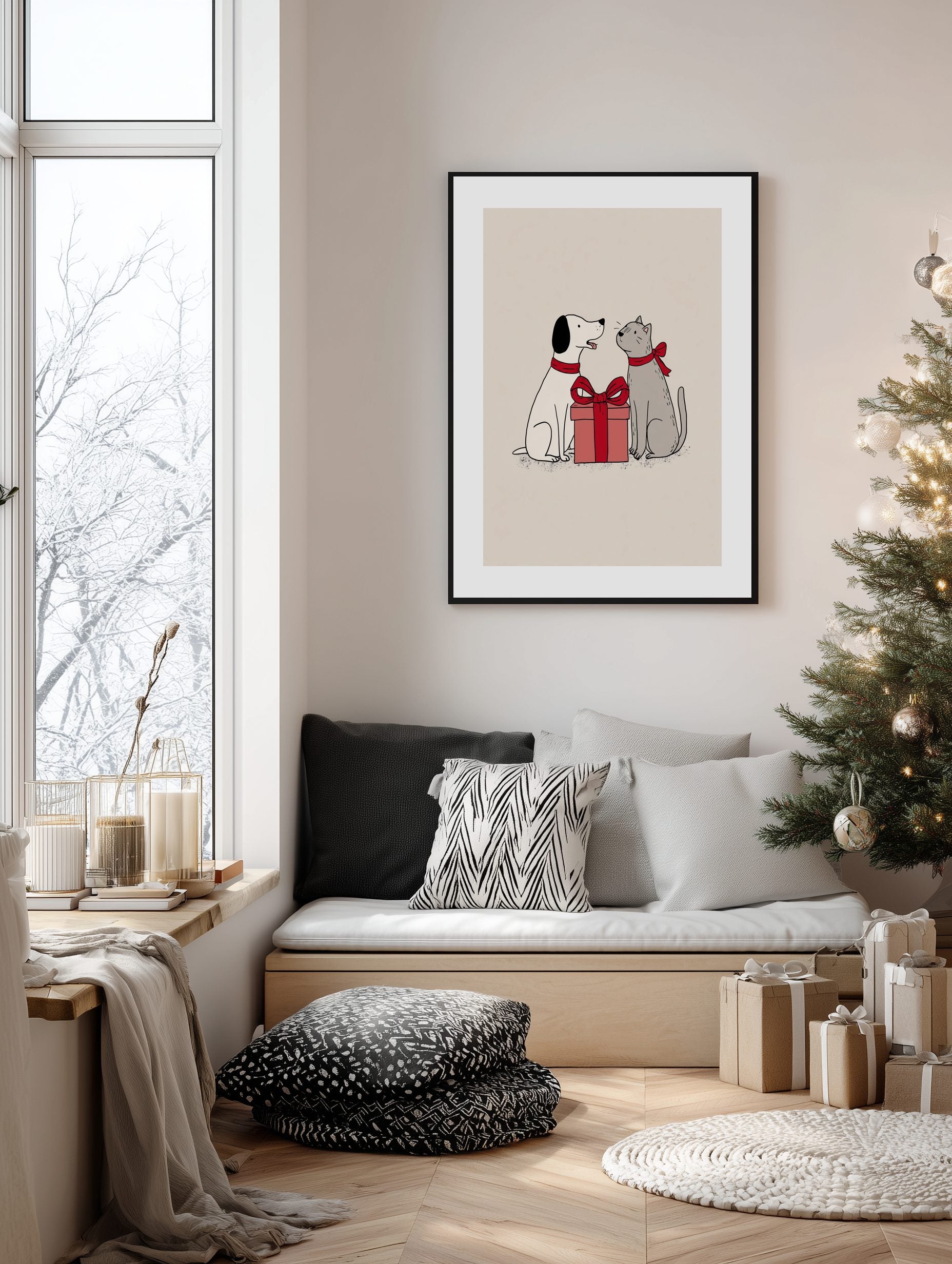 Dog and Cat Christmas Gift Poster